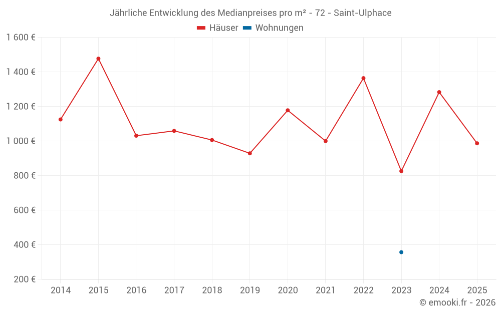Der Durchschnittspreis auf den 14 Hausgeschäften der letzten 24 Monate in der Gemeinde Saint-Ulphace betrug 928 € pro Quadratmeter für einen mittleren Immobilienwert von 66 000 €. Über diesen Zeitraum hinweg lagen 60% der Transaktionen zwischen 436 und 1 511 € pro Quadratmeter (vom 2. bis zum 8. Dezil).