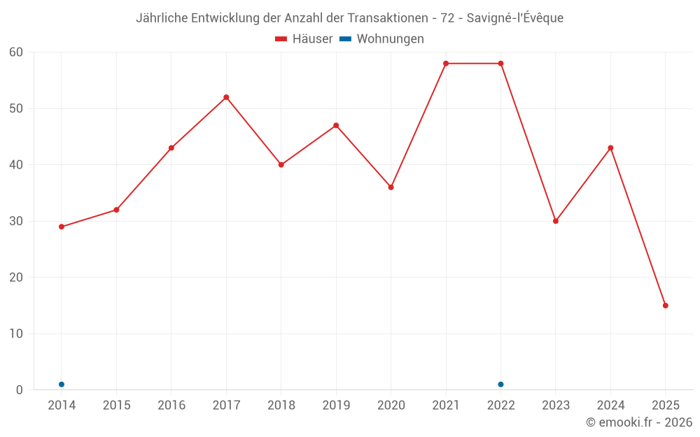 Der Durchschnittspreis auf den 49 Hausgeschäften der letzten 12 Monate in der Gemeinde Savigné-l'Évêque betrug 1 932 € pro Quadratmeter für einen mittleren Immobilienwert von 165 320 €. Über diesen Zeitraum hinweg lagen 60% der Transaktionen zwischen 1 733 und 2 033 € pro Quadratmeter (vom 2. bis zum 8. Dezil).