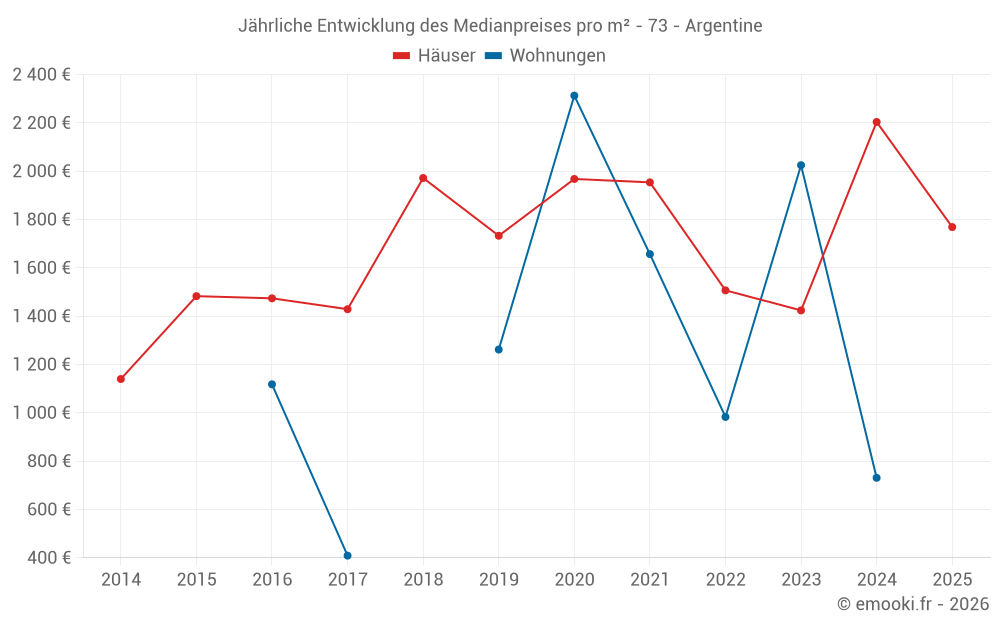 Der Durchschnittspreis auf den 24 Hausgeschäften der letzten 24 Monate in der Gemeinde Argentine betrug 2 090 € pro Quadratmeter für einen mittleren Immobilienwert von 192 500 €. Über diesen Zeitraum hinweg lagen 60% der Transaktionen zwischen 1 174 und 3 302 € pro Quadratmeter (vom 2. bis zum 8. Dezil).
