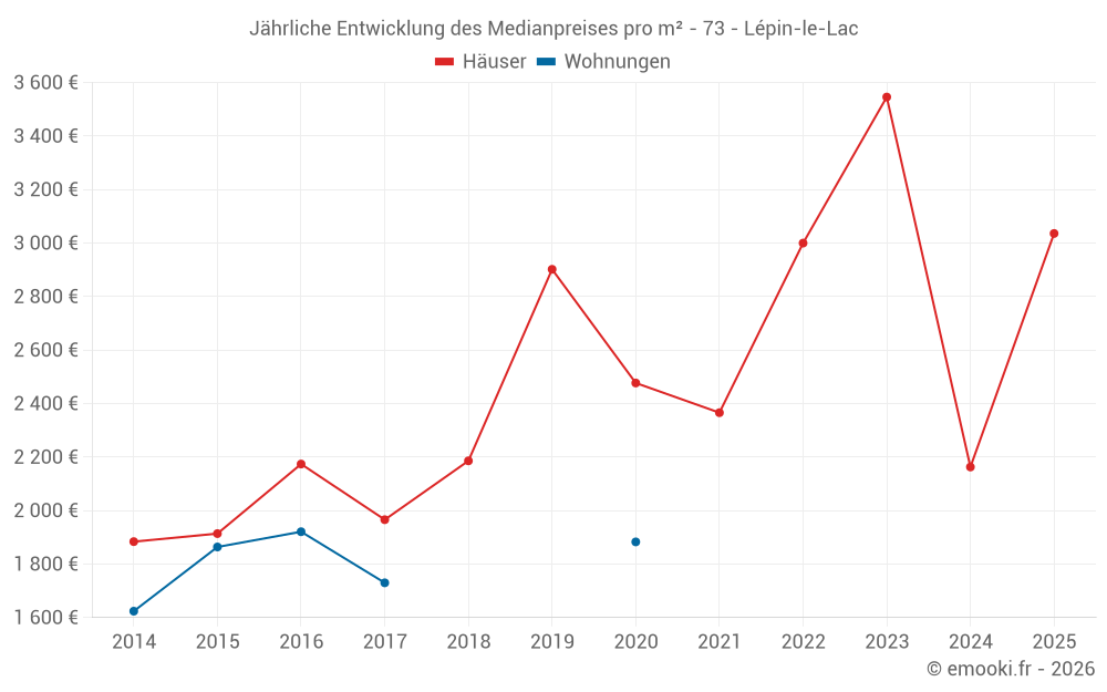 Entwicklung des Medianpreises pro m² von Wohnungen