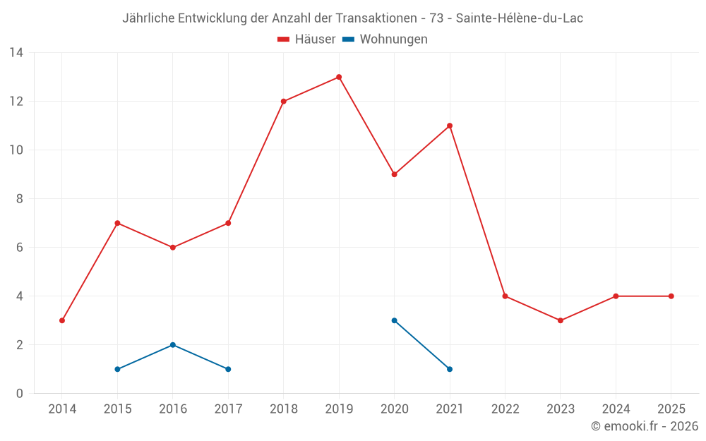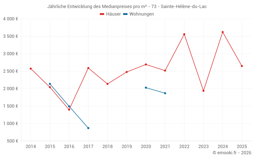 Der Preis pro m² von Häusern ist seit 1 Jahr um 27% gesunken, aber er ist in 9 Jahren um 89% gestiegen.