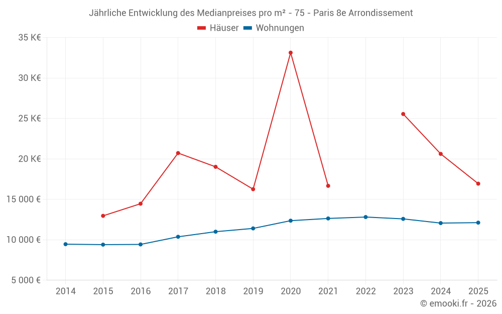 Was ist der Preis pro m2 für Wohnungen in Paris 8e Arrondissement?