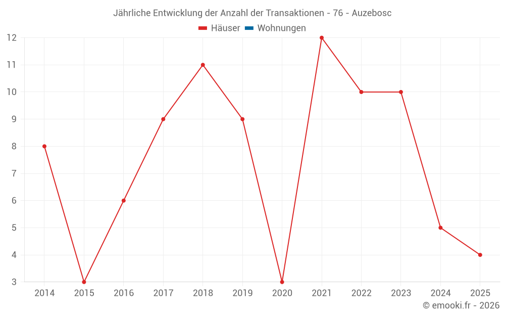 Der Durchschnittspreis auf den 15 Hausgeschäften der letzten 24 Monate in der Gemeinde Auzebosc betrug 1 997 € pro Quadratmeter für einen mittleren Immobilienwert von 165 716 €. Über diesen Zeitraum hinweg lagen 60% der Transaktionen zwischen 1 449 und 2 172 € pro Quadratmeter (vom 2. bis zum 8. Dezil).