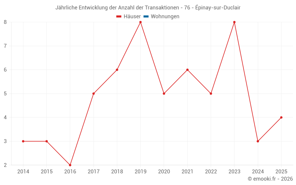 Der Preis pro m² von Häusern ist seit 4 Jahren um 16% gesunken, aber er ist in 5 Jahren um 63% gestiegen.