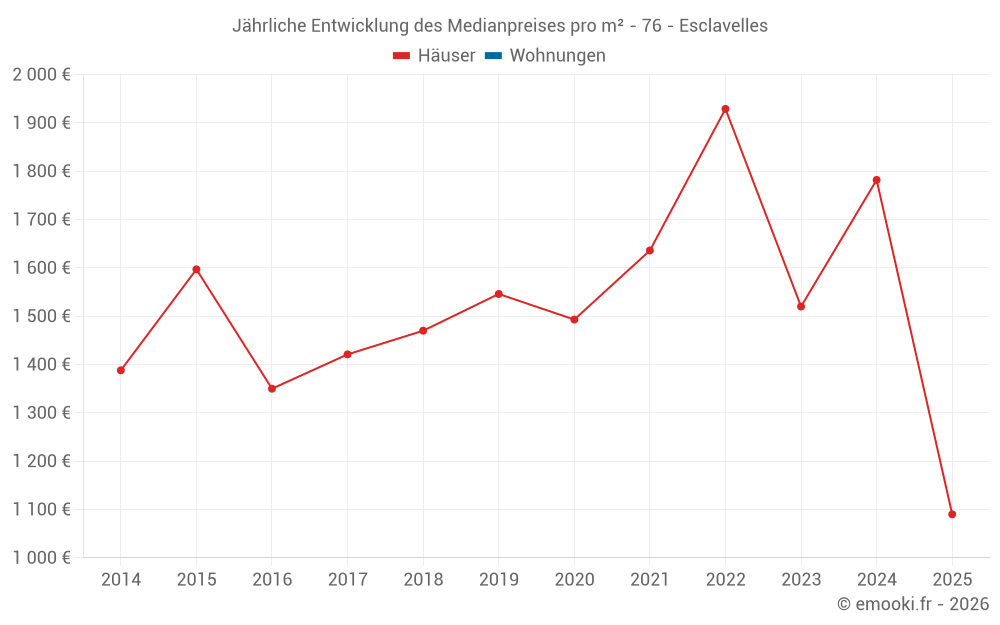 Werte der Preispercentile pro m² über die für den geschätzten Preis jeder Art von Immobilie verwendeten Zeiträume.