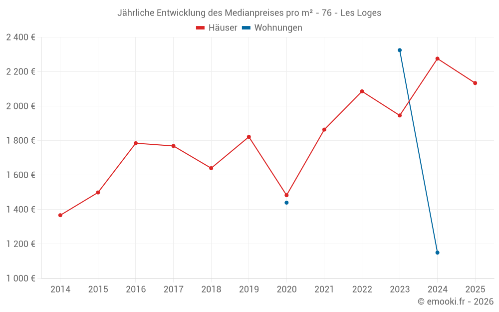 Der Durchschnittspreis auf den 27 Hausgeschäften der letzten 24 Monate in der Gemeinde Les Loges betrug 2 250 € pro Quadratmeter für einen mittleren Immobilienwert von 200 000 €. Über diesen Zeitraum hinweg lagen 60% der Transaktionen zwischen 1 549 und 2 411 € pro Quadratmeter (vom 2. bis zum 8. Dezil).