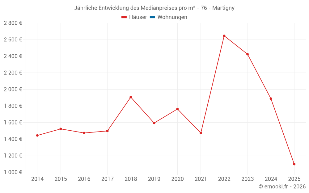 Entwicklung des Medianpreises pro m² von Häusern