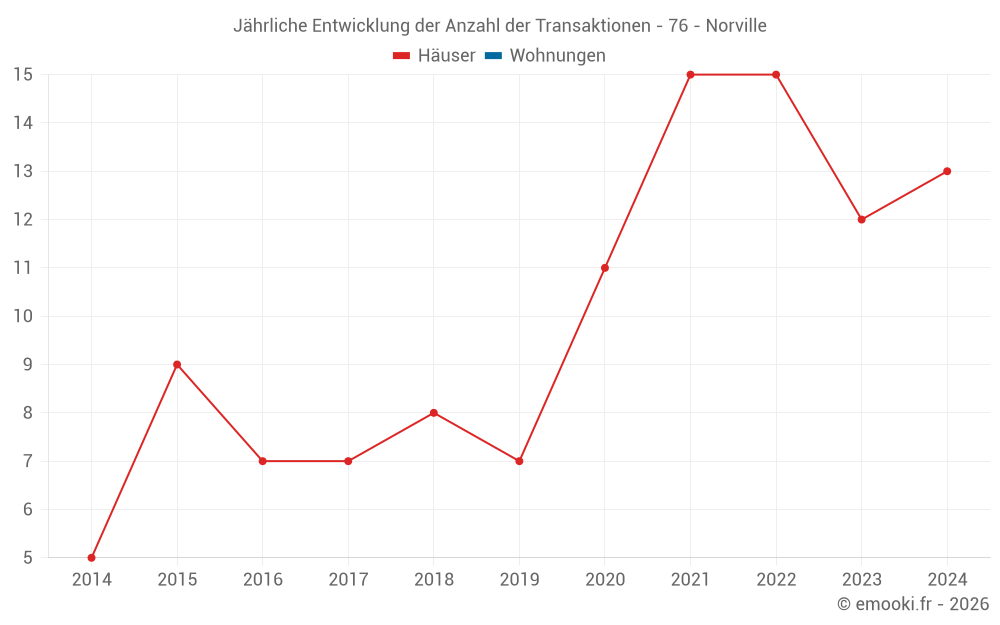 Der Durchschnittspreis auf den 20 Hausgeschäften der letzten 24 Monate in der Gemeinde Norville betrug 1 860 € pro Quadratmeter für einen mittleren Immobilienwert von 167 500 €. Über diesen Zeitraum hinweg lagen 60% der Transaktionen zwischen 1 314 und 2 301 € pro Quadratmeter (vom 2. bis zum 8. Dezil).