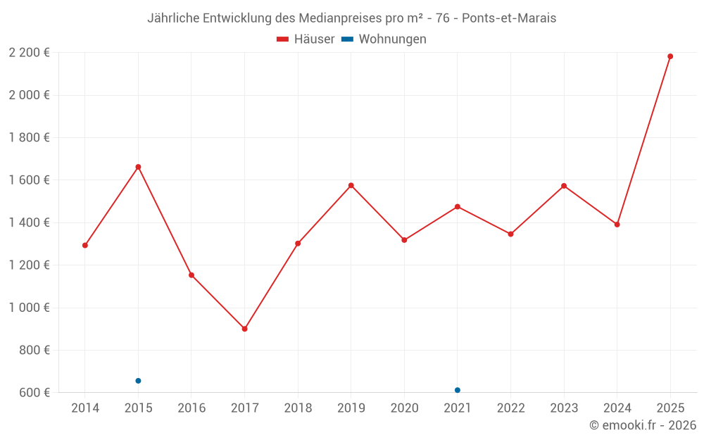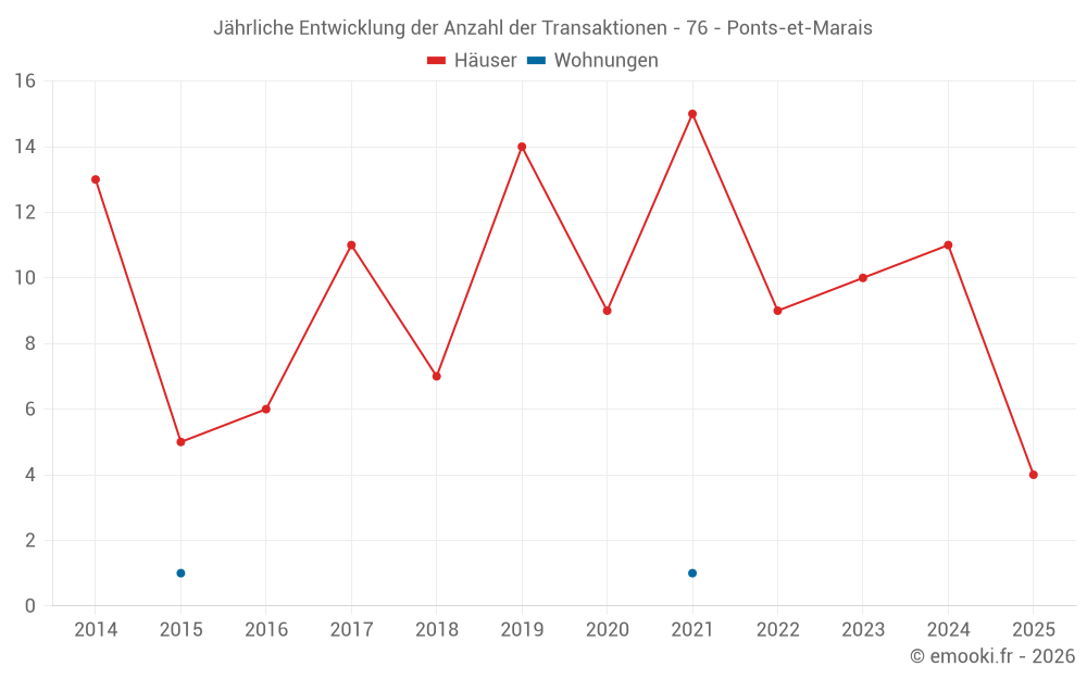 Der Durchschnittspreis auf den 23 Hausgeschäften der letzten 24 Monate in der Gemeinde Ponts-et-Marais betrug 1 527 € pro Quadratmeter für einen mittleren Immobilienwert von 125 000 €. Über diesen Zeitraum hinweg lagen 60% der Transaktionen zwischen 962 und 2 473 € pro Quadratmeter (vom 2. bis zum 8. Dezil).