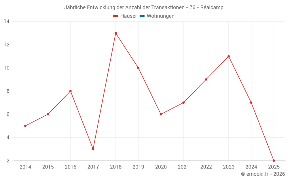 Der Durchschnittspreis auf den 17 Hausgeschäften der letzten 24 Monate in der Gemeinde Réalcamp betrug 1 394 € pro Quadratmeter für einen mittleren Immobilienwert von 93 000 €. Über diesen Zeitraum hinweg lagen 60% der Transaktionen zwischen 926 und 2 141 € pro Quadratmeter (vom 2. bis zum 8. Dezil).