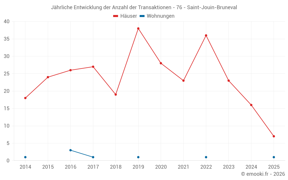Der Durchschnittspreis auf den 16 Hausgeschäften der letzten 12 Monate in der Gemeinde Saint-Jouin-Bruneval betrug 1 979 € pro Quadratmeter für einen mittleren Immobilienwert von 255 500 €. Über diesen Zeitraum hinweg lagen 60% der Transaktionen zwischen 1 720 und 2 286 € pro Quadratmeter (vom 2. bis zum 8. Dezil).