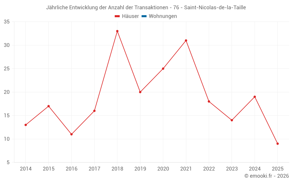 Der Durchschnittspreis auf den 18 Hausgeschäften der letzten 12 Monate in der Gemeinde Saint-Nicolas-de-la-Taille betrug 2 092 € pro Quadratmeter für einen mittleren Immobilienwert von 229 500 €. Über diesen Zeitraum hinweg lagen 60% der Transaktionen zwischen 1 800 und 2 294 € pro Quadratmeter (vom 2. bis zum 8. Dezil).
