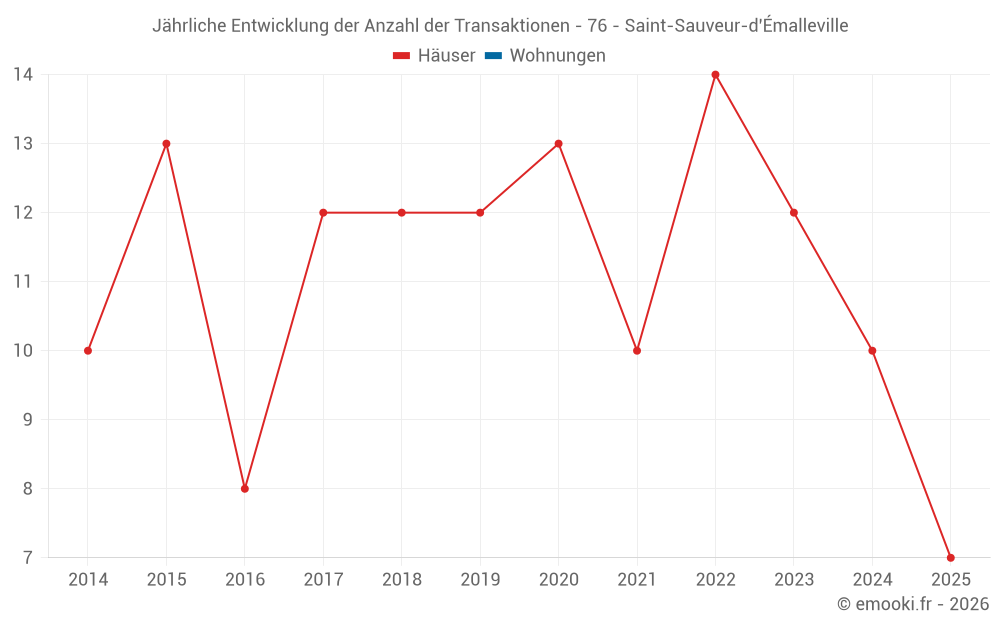 Der Durchschnittspreis auf den 24 Hausgeschäften der letzten 24 Monate in der Gemeinde Saint-Sauveur-d'Émalleville betrug 2 172 € pro Quadratmeter für einen mittleren Immobilienwert von 235 000 €. Über diesen Zeitraum hinweg lagen 60% der Transaktionen zwischen 1 899 und 2 496 € pro Quadratmeter (vom 2. bis zum 8. Dezil).