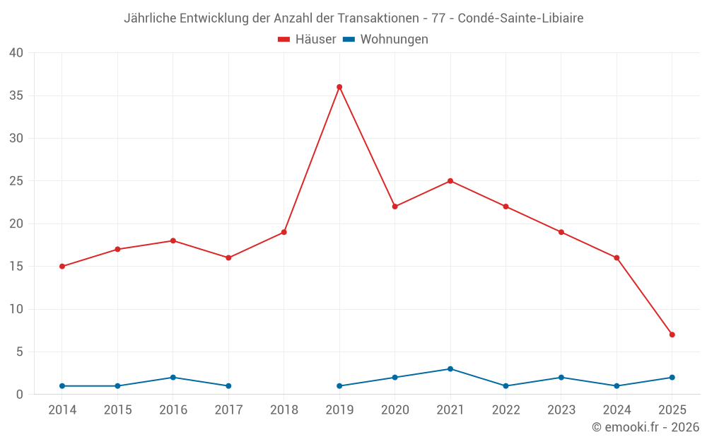 Der Durchschnittspreis auf den 16 Hausgeschäften der letzten 12 Monate in der Gemeinde Condé-Sainte-Libiaire betrug 3 316 € pro Quadratmeter für einen mittleren Immobilienwert von 360 128 €. Über diesen Zeitraum hinweg lagen 60% der Transaktionen zwischen 2 339 und 3 809 € pro Quadratmeter (vom 2. bis zum 8. Dezil).