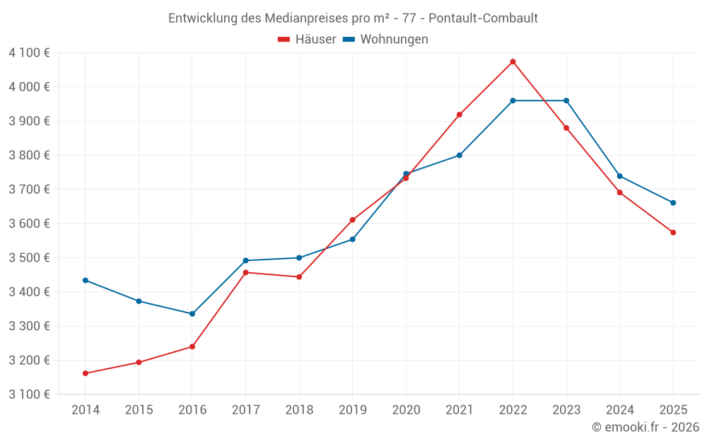 Karte der Immobilienpreise in der Gemeinde Pontault-Combault, wählen Sie einen Abschnitt, um Transaktionen nach Parzelle zu sehen.