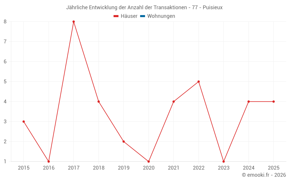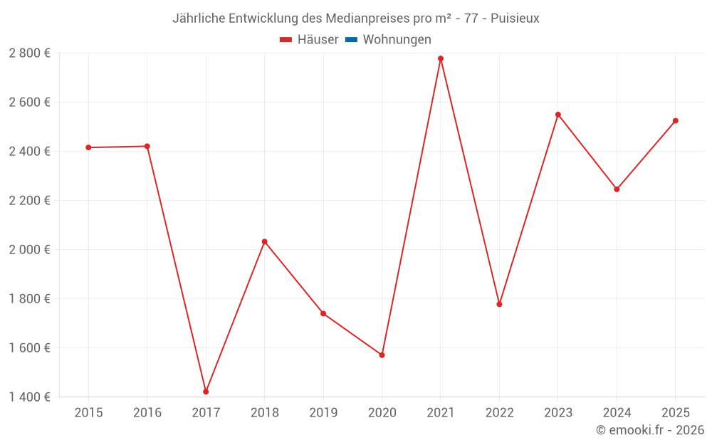 Der Preis pro m² von Häusern ist seit 4 Jahren um 9.1% gesunken, aber er ist in 8 Jahren um 78% gestiegen.