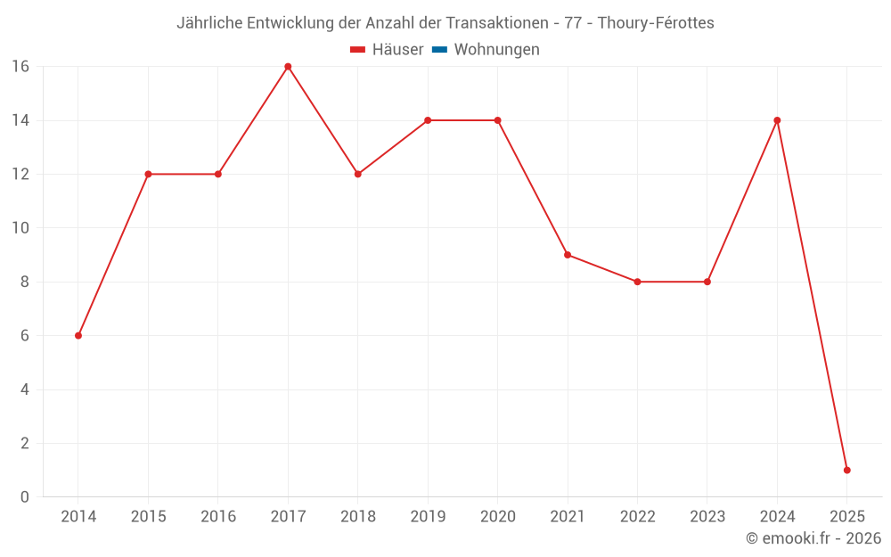 Der Durchschnittspreis auf den 21 Hausgeschäften der letzten 24 Monate in der Gemeinde Thoury-Férottes betrug 2 000 € pro Quadratmeter für einen mittleren Immobilienwert von 169 000 €. Über diesen Zeitraum hinweg lagen 60% der Transaktionen zwischen 1 603 und 2 600 € pro Quadratmeter (vom 2. bis zum 8. Dezil).