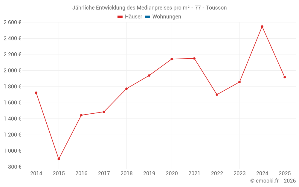 Entwicklung des Medianpreises pro m² von Häusern