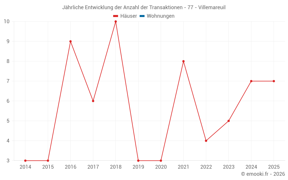 Der Durchschnittspreis auf den 15 Hausgeschäften der letzten 24 Monate in der Gemeinde Villemareuil betrug 2 246 € pro Quadratmeter für einen mittleren Immobilienwert von 265 000 €. Über diesen Zeitraum hinweg lagen 60% der Transaktionen zwischen 1 357 und 2 903 € pro Quadratmeter (vom 2. bis zum 8. Dezil).