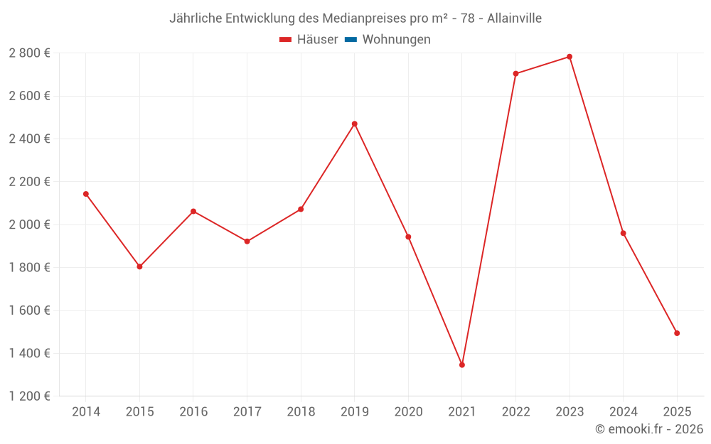 Entwicklung des Medianpreises pro m² von Häusern