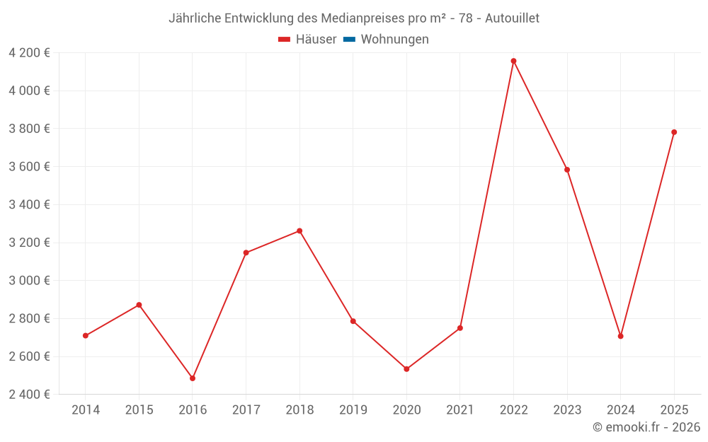Der Preis pro m² von Häusern ist seit 3 Jahren um 9% gesunken, aber er ist in 9 Jahren um 52% gestiegen.