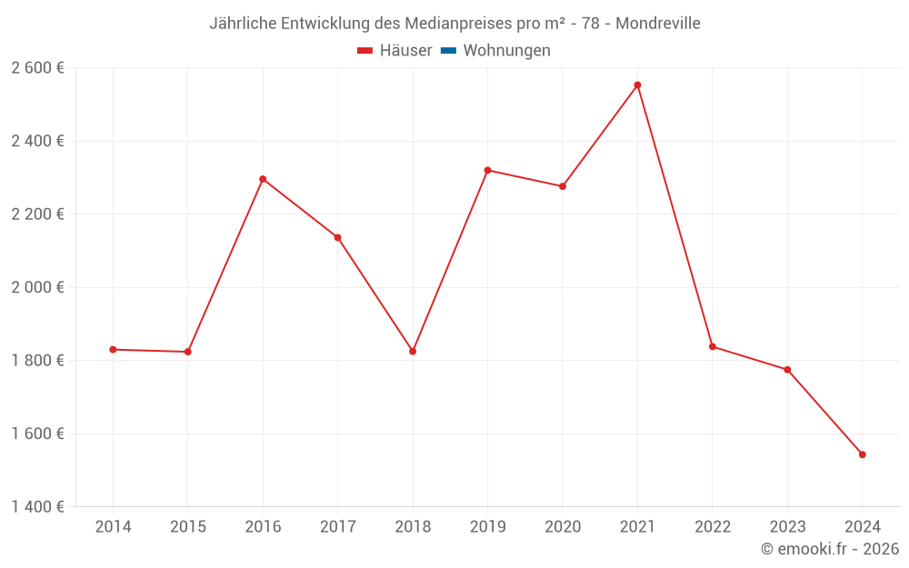 Entwicklung des Medianpreises pro m² von Häusern