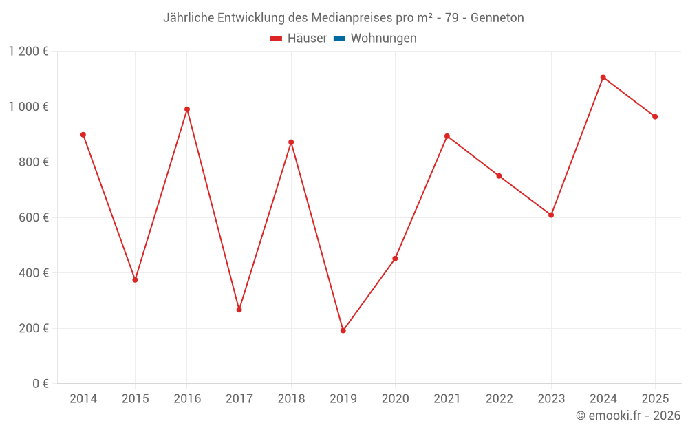 Entwicklung des Medianpreises pro m² von Häusern