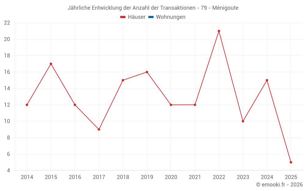 Der Durchschnittspreis auf den 17 Hausgeschäften der letzten 12 Monate in der Gemeinde Ménigoute betrug 921 € pro Quadratmeter für einen mittleren Immobilienwert von 115 000 €. Über diesen Zeitraum hinweg lagen 60% der Transaktionen zwischen 821 und 1 142 € pro Quadratmeter (vom 2. bis zum 8. Dezil).