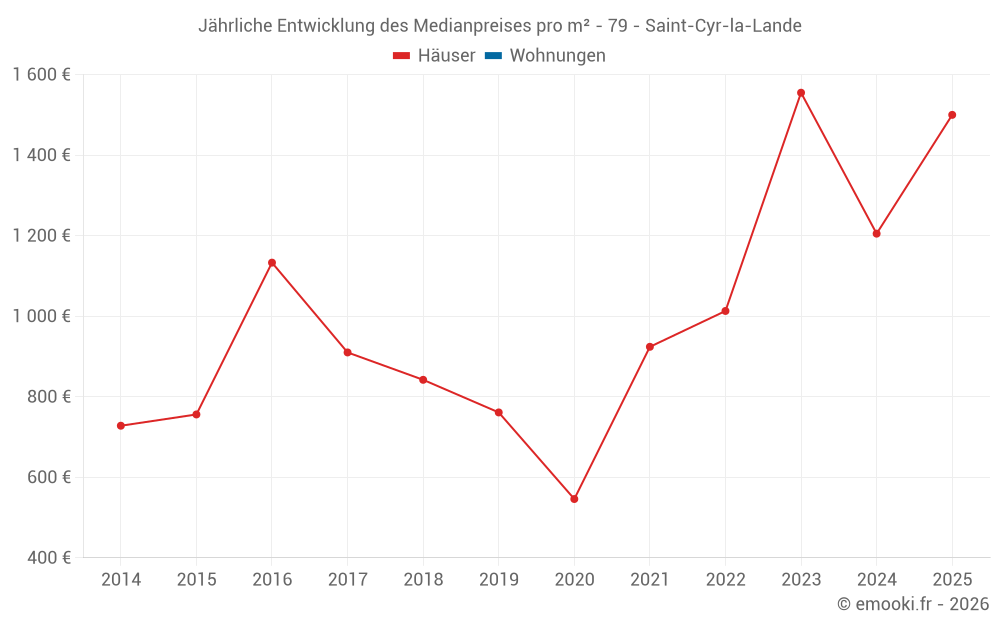Entwicklung des Medianpreises pro m² von Häusern