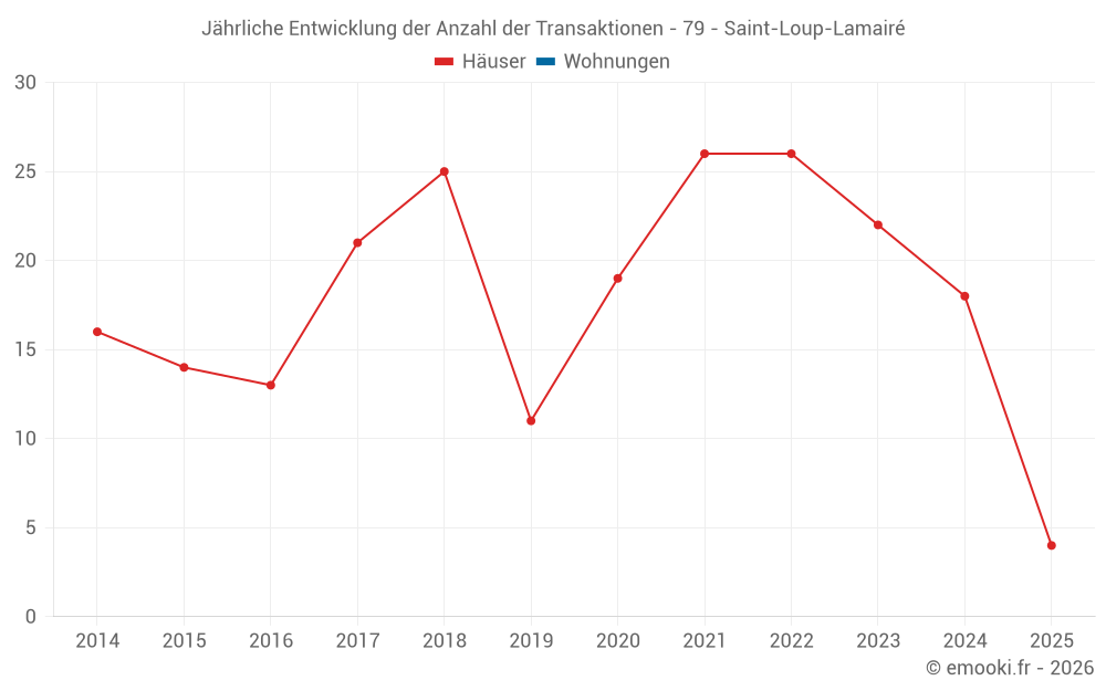 Der Durchschnittspreis auf den 18 Hausgeschäften der letzten 12 Monate in der Gemeinde Saint-Loup-Lamairé betrug 812 € pro Quadratmeter für einen mittleren Immobilienwert von 83 500 €. Über diesen Zeitraum hinweg lagen 60% der Transaktionen zwischen 657 und 1 236 € pro Quadratmeter (vom 2. bis zum 8. Dezil).