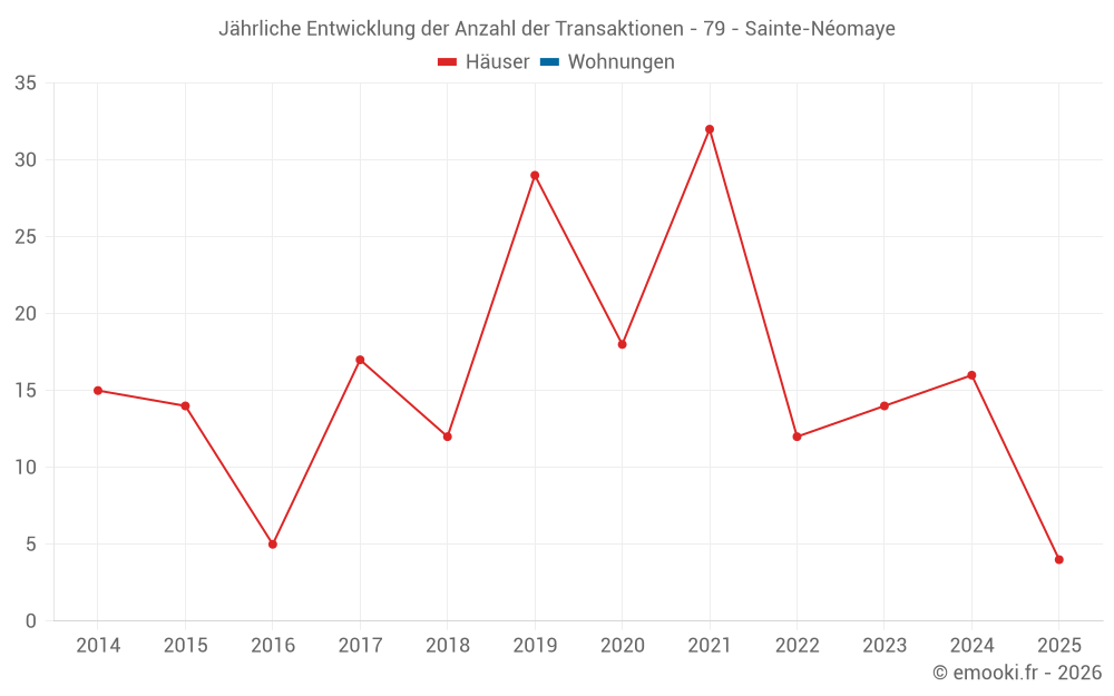 Der Durchschnittspreis auf den 26 Hausgeschäften der letzten 24 Monate in der Gemeinde Sainte-Néomaye betrug 1 690 € pro Quadratmeter für einen mittleren Immobilienwert von 207 100 €. Über diesen Zeitraum hinweg lagen 60% der Transaktionen zwischen 1 510 und 2 117 € pro Quadratmeter (vom 2. bis zum 8. Dezil).