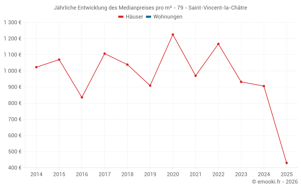 Der Durchschnittspreis auf den 17 Hausgeschäften der letzten 24 Monate in der Gemeinde Saint-Vincent-la-Châtre betrug 906 € pro Quadratmeter für einen mittleren Immobilienwert von 90 000 €. Über diesen Zeitraum hinweg lagen 60% der Transaktionen zwischen 491 und 1 356 € pro Quadratmeter (vom 2. bis zum 8. Dezil).