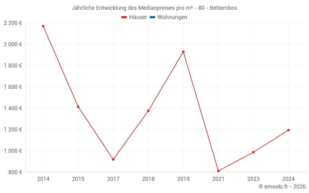 Entwicklung des Medianpreises pro m² von Häusern