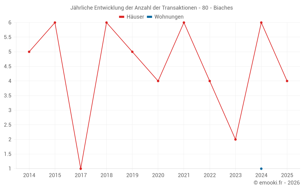 Karte der Immobilienpreise in der Gemeinde Biaches, wählen Sie einen Abschnitt, um Transaktionen nach Parzelle zu sehen.