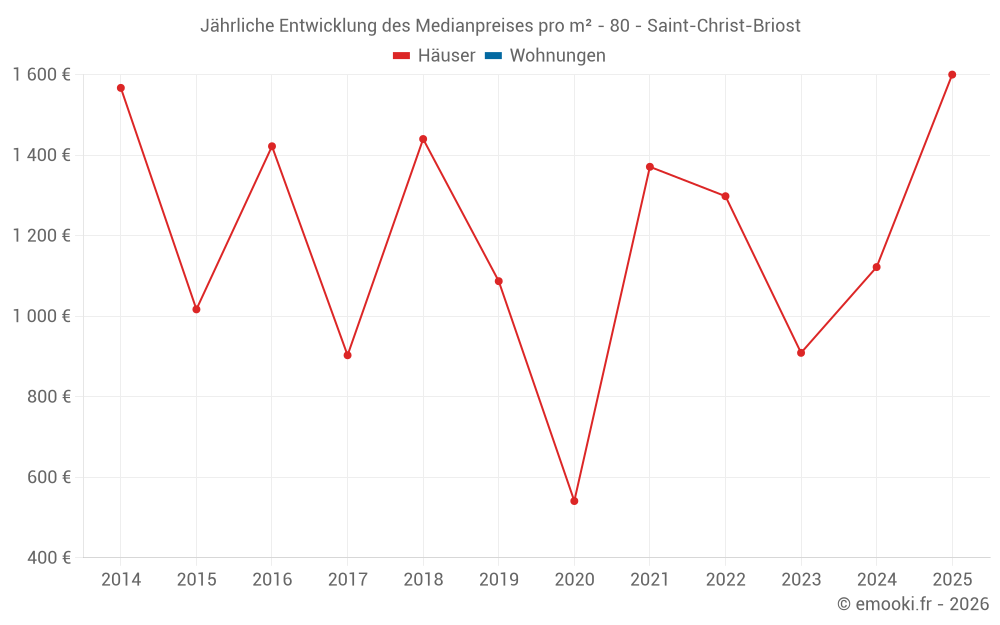 Entwicklung des Medianpreises pro m² von Häusern