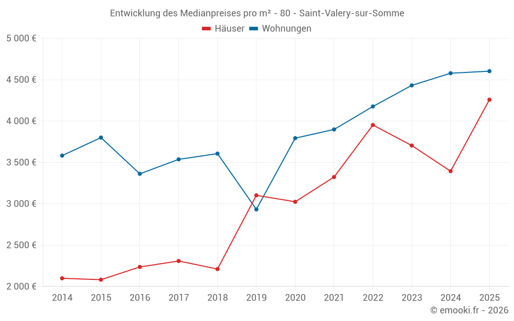 Werte der Preispercentile pro m² über die für den geschätzten Preis jeder Art von Immobilie verwendeten Zeiträume.