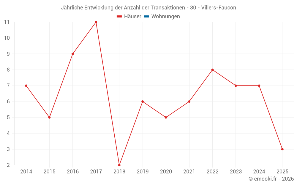 Karte der Immobilienpreise in der Gemeinde Villers-Faucon, wählen Sie einen Abschnitt, um Transaktionen nach Parzelle zu sehen.