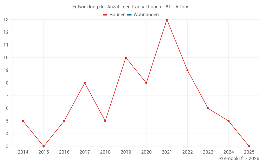 Karte der Immobilienpreise in der Gemeinde Arfons, wählen Sie einen Abschnitt, um Transaktionen nach Parzelle zu sehen.