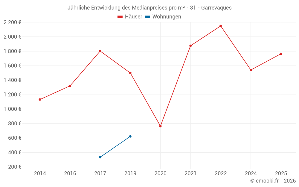 Karte der Immobilienpreise in der Gemeinde Garrevaques, wählen Sie einen Abschnitt, um Transaktionen nach Parzelle zu sehen.