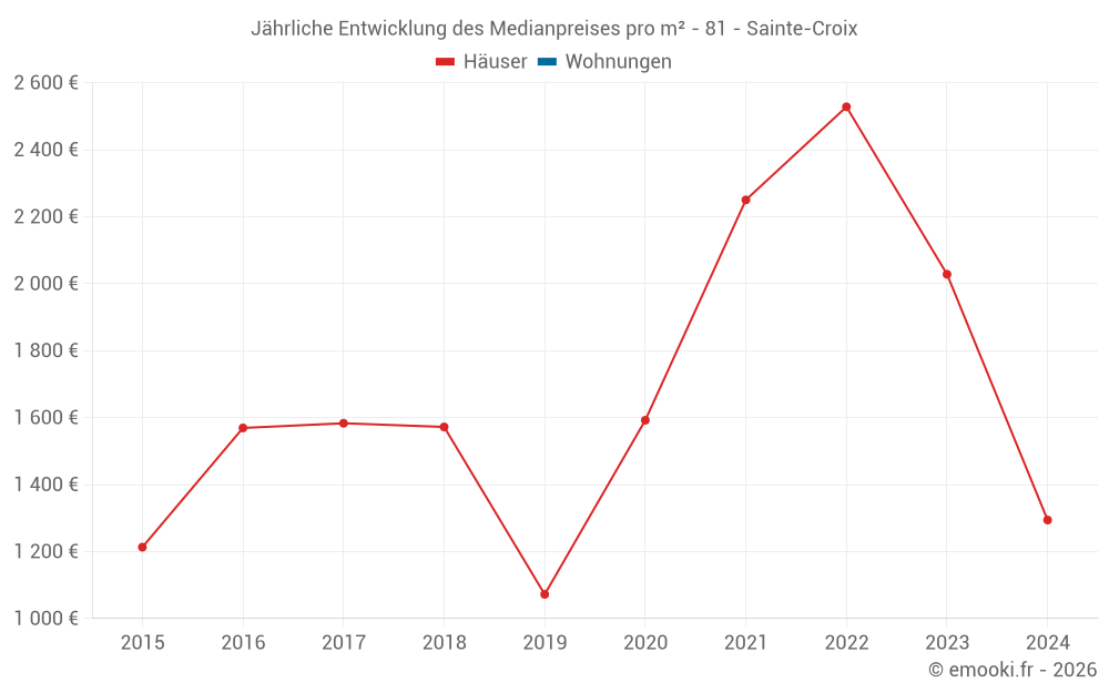 Entwicklung des Medianpreises pro m² von Häusern