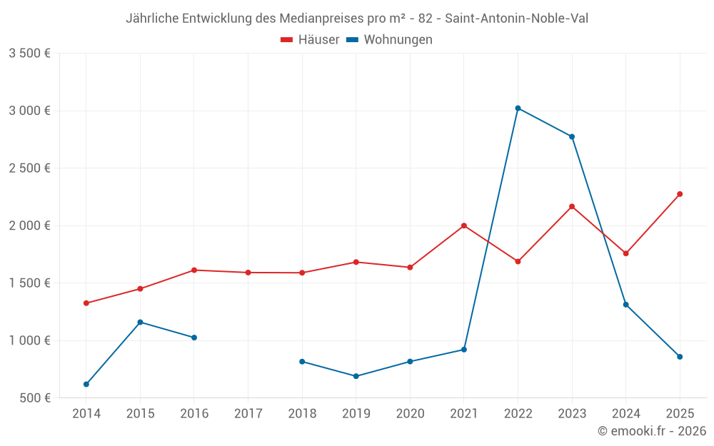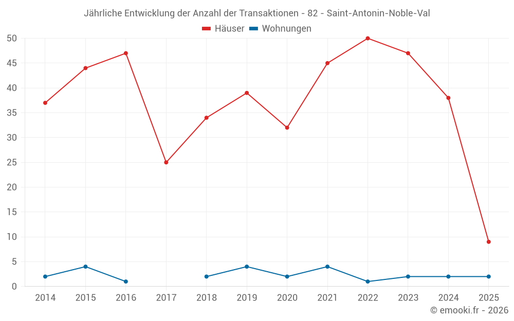 Der Durchschnittspreis auf den 25 Hausgeschäften der letzten 12 Monate in der Gemeinde Saint-Antonin-Noble-Val betrug 2 148 € pro Quadratmeter für einen mittleren Immobilienwert von 247 480 €. Über diesen Zeitraum hinweg lagen 60% der Transaktionen zwischen 1 443 und 2 786 € pro Quadratmeter (vom 2. bis zum 8. Dezil).