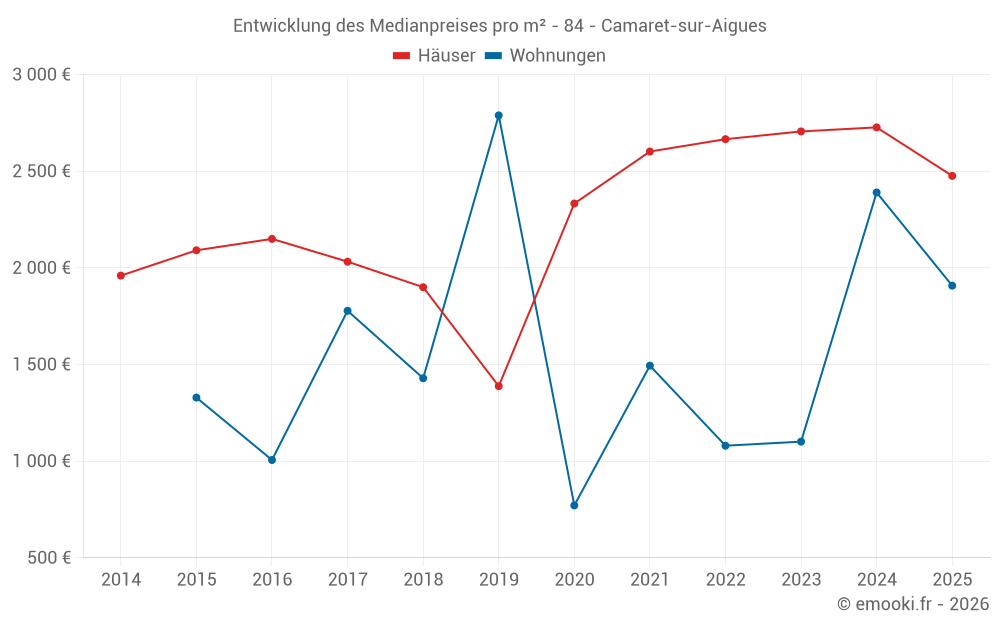 Werte der Preispercentile pro m² über die für den geschätzten Preis jeder Art von Immobilie verwendeten Zeiträume.