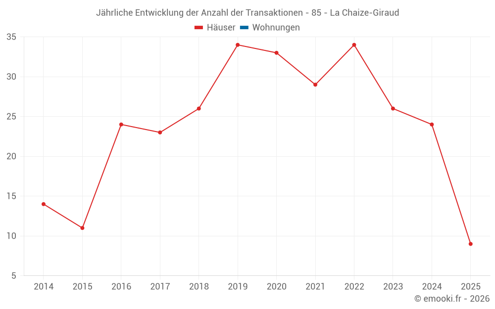 Der Durchschnittspreis auf den 24 Hausgeschäften der letzten 12 Monate in der Gemeinde La Chaize-Giraud betrug 2 534 € pro Quadratmeter für einen mittleren Immobilienwert von 169 600 €. Über diesen Zeitraum hinweg lagen 60% der Transaktionen zwischen 1 000 und 3 005 € pro Quadratmeter (vom 2. bis zum 8. Dezil).