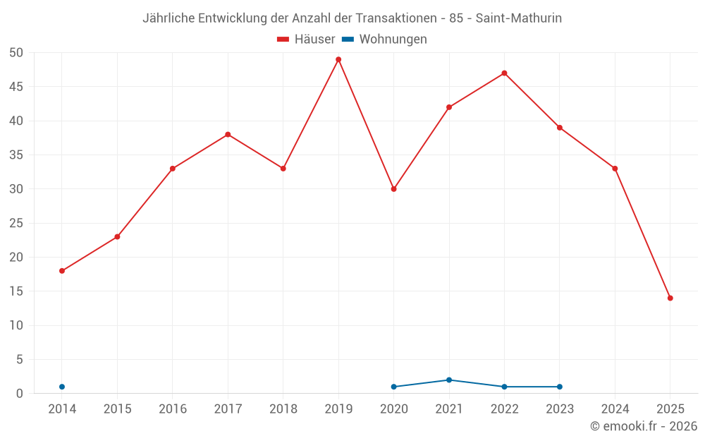 Der Durchschnittspreis auf den 31 Hausgeschäften der letzten 12 Monate in der Gemeinde Saint-Mathurin betrug 2 835 € pro Quadratmeter für einen mittleren Immobilienwert von 270 000 €. Über diesen Zeitraum hinweg lagen 60% der Transaktionen zwischen 2 331 und 3 128 € pro Quadratmeter (vom 2. bis zum 8. Dezil).