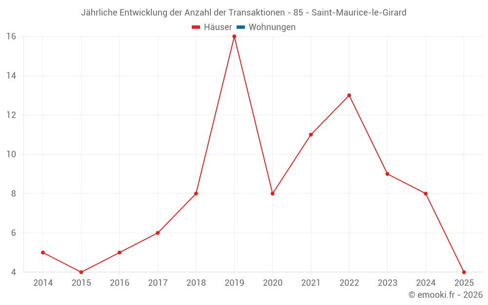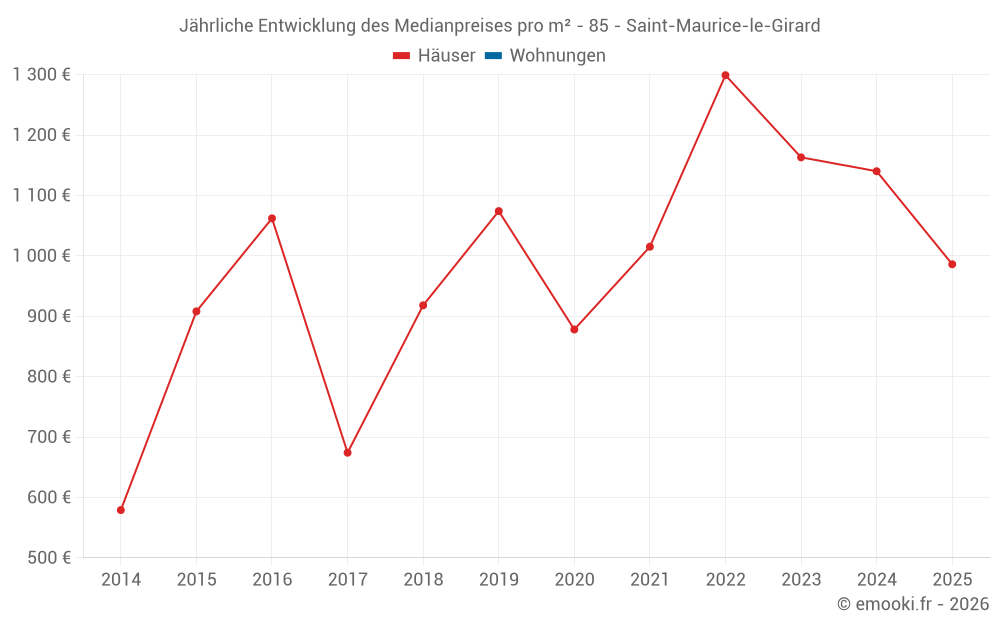 Der Durchschnittspreis auf den 18 Hausgeschäften der letzten 24 Monate in der Gemeinde Saint-Maurice-le-Girard betrug 1 193 € pro Quadratmeter für einen mittleren Immobilienwert von 136 250 €. Über diesen Zeitraum hinweg lagen 60% der Transaktionen zwischen 929 und 1 390 € pro Quadratmeter (vom 2. bis zum 8. Dezil).