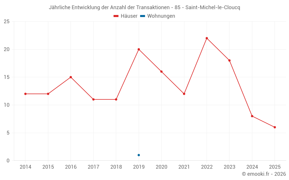 Der Durchschnittspreis auf den 22 Hausgeschäften der letzten 24 Monate in der Gemeinde Saint-Michel-le-Cloucq betrug 1 634 € pro Quadratmeter für einen mittleren Immobilienwert von 152 500 €. Über diesen Zeitraum hinweg lagen 60% der Transaktionen zwischen 1 125 und 2 059 € pro Quadratmeter (vom 2. bis zum 8. Dezil).
