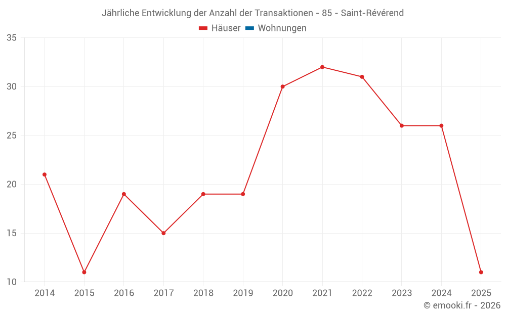 Der Durchschnittspreis auf den 28 Hausgeschäften der letzten 12 Monate in der Gemeinde Saint-Révérend betrug 2 633 € pro Quadratmeter für einen mittleren Immobilienwert von 231 000 €. Über diesen Zeitraum hinweg lagen 60% der Transaktionen zwischen 2 142 und 2 969 € pro Quadratmeter (vom 2. bis zum 8. Dezil).