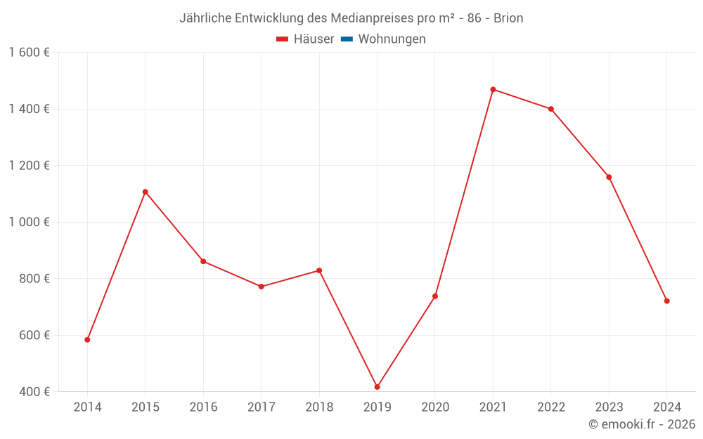 Entwicklung des Medianpreises pro m² von Häusern