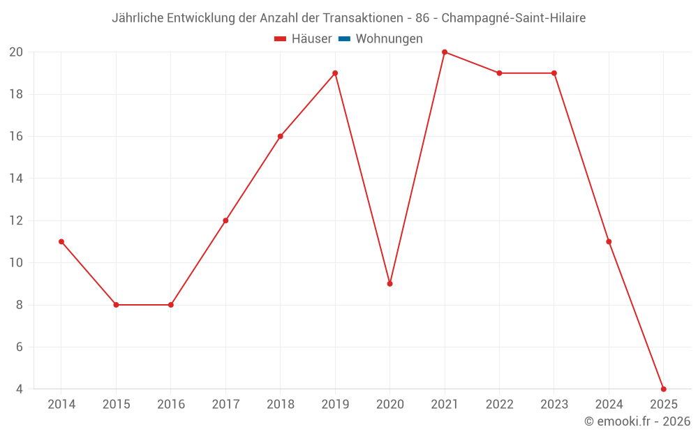 Der Durchschnittspreis auf den 25 Hausgeschäften der letzten 24 Monate in der Gemeinde Champagné-Saint-Hilaire betrug 876 € pro Quadratmeter für einen mittleren Immobilienwert von 107 100 €. Über diesen Zeitraum hinweg lagen 60% der Transaktionen zwischen 623 und 1 244 € pro Quadratmeter (vom 2. bis zum 8. Dezil).