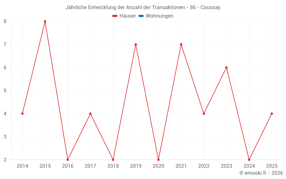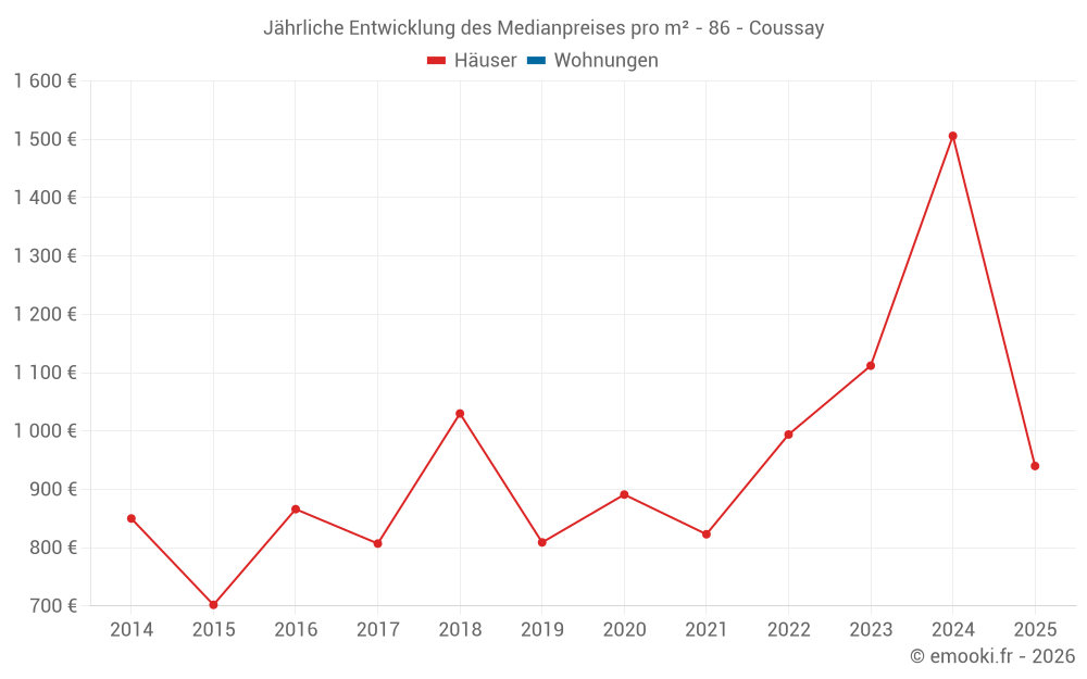 Der Preis pro m² von Häusern ist seit 2 Jahren um 15% gesunken, aber er ist in 10 Jahren um 34% gestiegen.